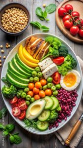 - Healthy fats: Olive oil, avocado, nuts, seeds